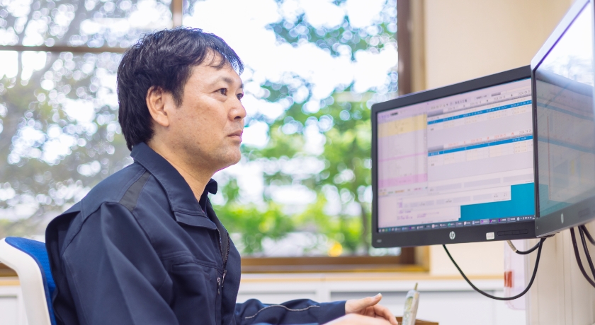 工場内の生産設備のシステム関連の(PCやPLC等)保守・管理・設備稼働のためのプログラムを組むことや、事務所内業務の省人化・自動化のためのシステム導入等を実施しています。